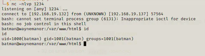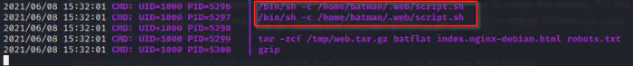We can see that cron job runs a script from the user batman’s home directory as the user with ID 1000 (i.e. batman). Then, I got out of the pspy64 and re-entered the reverse shell.
