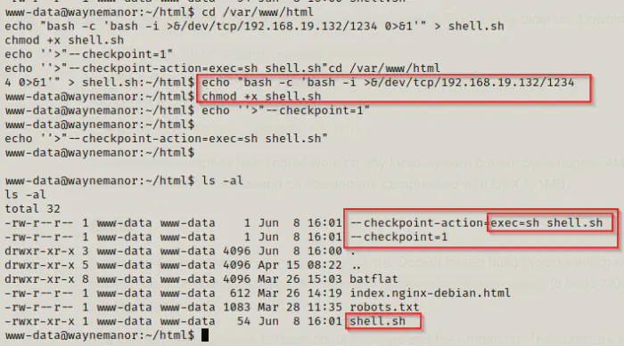 echo ''>"--checkpoint-action=exec=sh shell.sh"