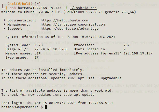Subsequently, I downloaded the binary to the target machine and ran it.