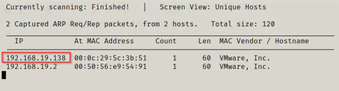 sudo netdiscover -i eth0 -r 192.168.19.0/24