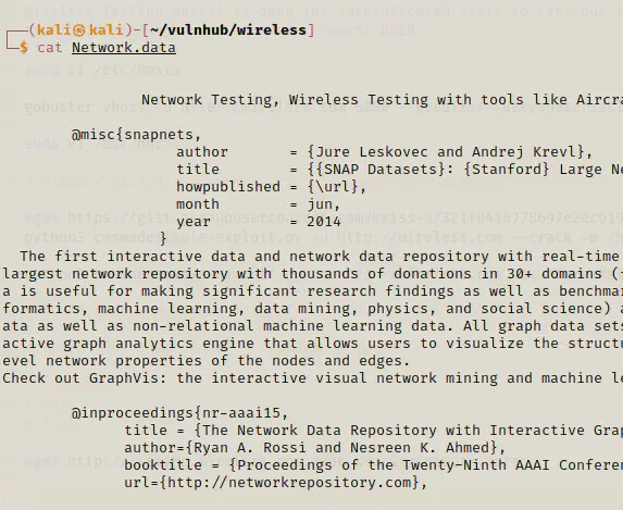 cewl -d 3 http://testing.wireless.com:8080/static/Network.data > dict.txt