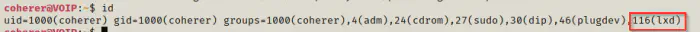 Since I got the access to the user coherer, my next step would be getting the root access. I looked for the groups where the user belonged to.