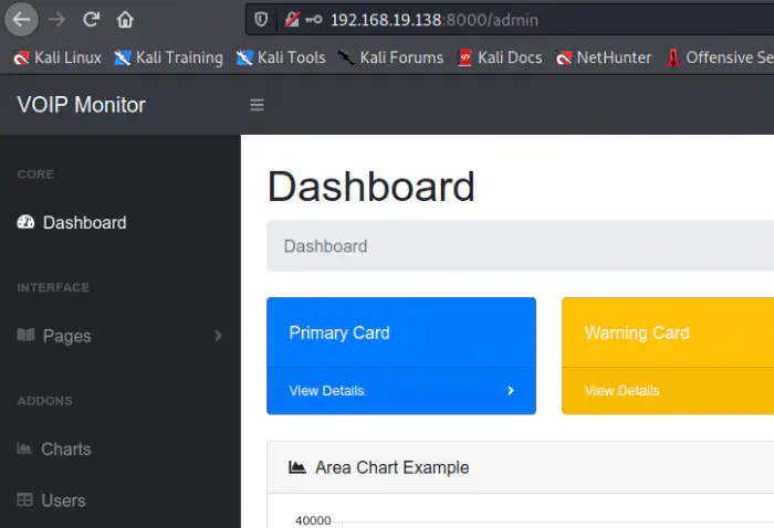 The 80 port has a simple Apache default landing page. Likewise, on port 8000, we had a website for VOIP. Furthermore, the website had a login page whose source looks like follows.