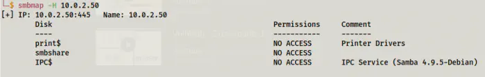 Now, we come to the point where we have to work with the SMB server. SMB is a protocol that is primarily used by the Windows OS for sharing files. Anyway, like the FTP server, this also allows anonymous access. So, we can verify this by using smbmap.
