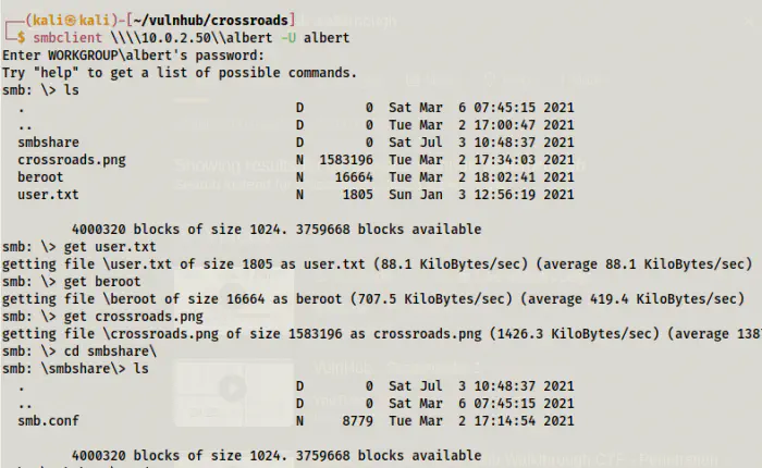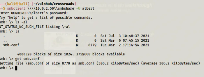smbclient \\\\10.0.2.50\\smbshare -U albert