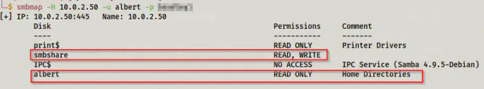 smbmap -H 10.0.2.50 -u albert -p <password>