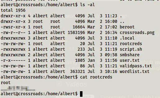 Here, the user.txt file contains the flag of the user. We got the same crossroads.png file and a binary beroot. Let’s check the files.