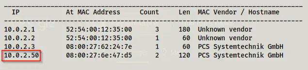 sudo netdiscover -i eth0 -r 10.0.2.0/24
