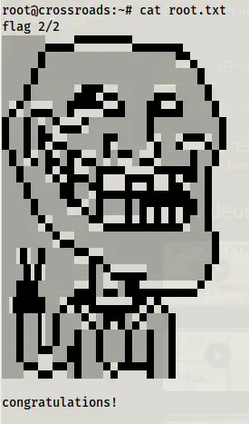 Crossroads is an easy/medium machine by the author tasiyanci, a fan of blues like me. And, I am a big fan of crossroads and it gave me pleasure to do this machine. “Crossroads Walkthrough - Vulnhub - Writeup”.