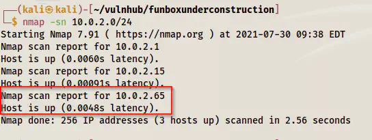 nmap -sn 10.0.2.0/24