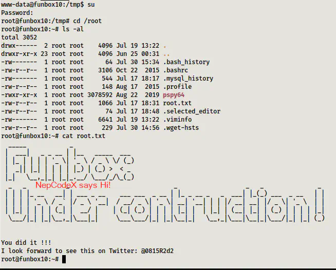 Next, I logged into the root shell.