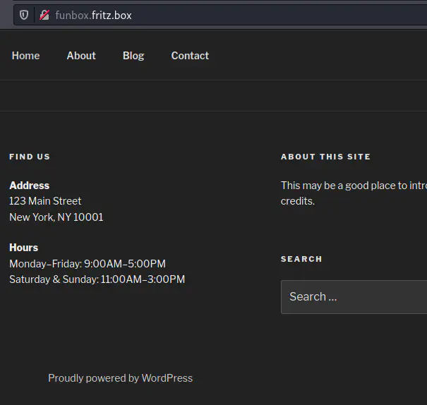 There are FTP, SSH, HTTP and MYSQL services exposed on the target. Likewise, you can see that the HTTP is being redirected to funbox.fritz.box. Hence, we can add the hostname to our hosts file.