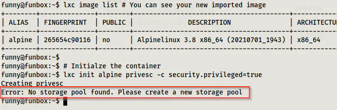 When I looked at the groups the user funny belonged to, I saw an entry of ’lxd’. There is an exploit relating to this group.
