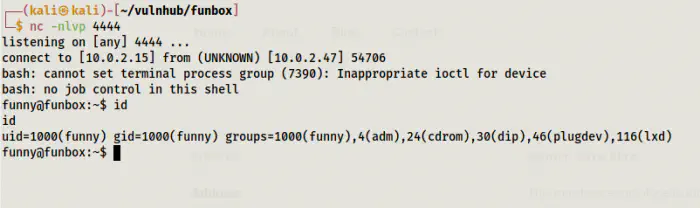 Then I improved the shell. For more information, check this post: Upgrade to an intelligent reverse shell