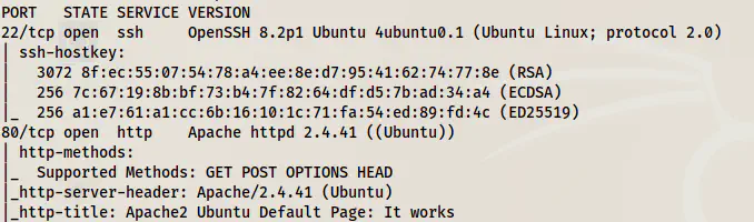 From the Nmap result, we can see that the home page contains the default page of the apache server. Hence, we can bruteforce the directories.