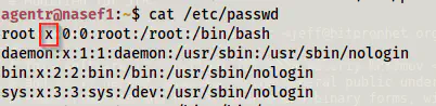Here, the letter ‘x’ means that the hash of the password is stored in the shadow file that we don’t have access to. However, if we remove that letter from there, we remove the password of the user root.