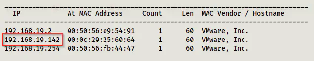 sudo netdiscover -i eth0 -r 192.168.19.0/24