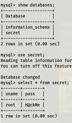 However, connecting from the target machine gave me a database “secret”.