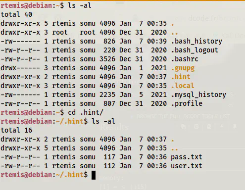 In the home directory of the user rtemis, we have a directory called .hint.