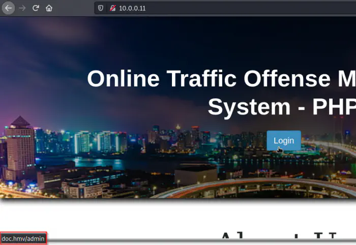 We can see a login button on the main page. And, we see the hostname for the target while hovering on it.