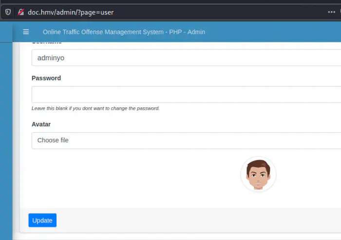 Furthermore, I checked the web application and found a feature that allows uploading a profile picture for the admin.