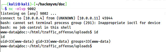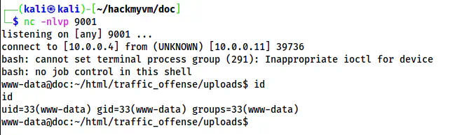 As we can see above, I got the remote command execution from the backdoor. Therefore, I opened a netcat listener on port 9001.