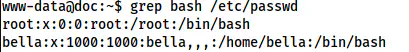 Now that I have got the foothold, I have to get the user’s shell. There is a user ‘bella’ on the target.