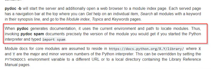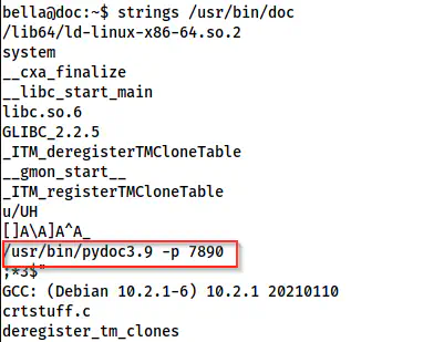 Here, we can see that the binary executes another binary “pydoc”. Thus, I checked the documentation of it.