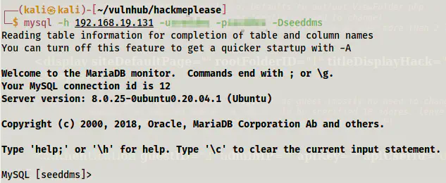 mysql -h 192.168.19.131 -u<username> -p -D<database_name>