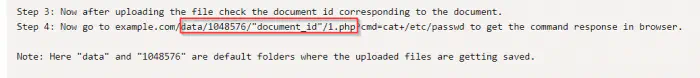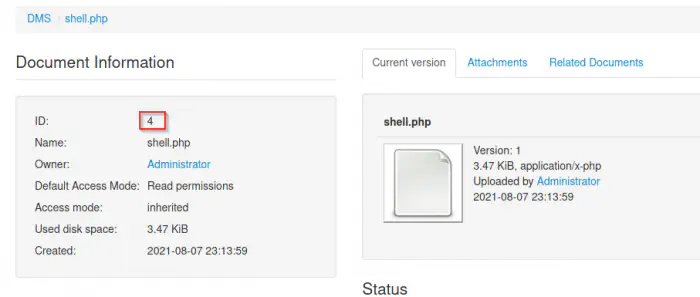 If we click on the file, we see a document ID as I have shown above. This is all the exploit requires. Now, we can visit the link as following in my case to get a reverse shell.