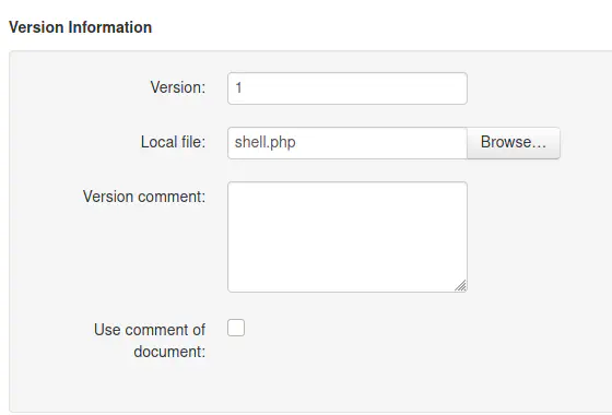 Firstly, we have to upload the shell by navigating to the “Add document” menu. Next, we have to browse the PHP file and upload it. This will give us a blank page. However, upon returning to the dashboard, we see a file already uploaded.