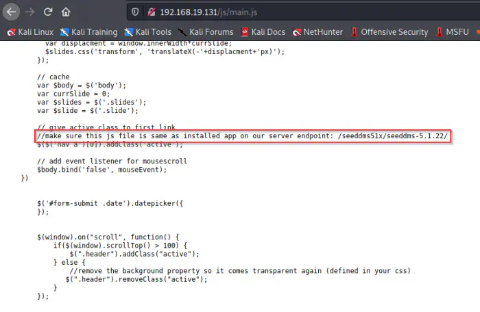 In the file, we see a document management system (DMS) link. This technology was new to me. So, I looked up the git repo, and for any exploits if present. We know the version being 5.1.22, so, I looked at the code specifically for that tag.