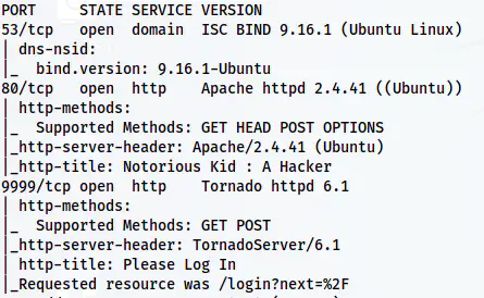 We have a DNS service on port 53 and two HTTP servers running on ports 80 and 9999 available on the target.