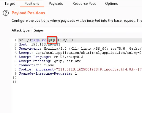 From the page source, we see that we might have a GET parameter “page_no”. So, by fuzzing the parameter, we can obtain the next hint. Here, we can use the burp suite’s intruder to do the job.