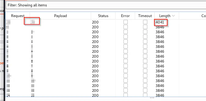 When we start the attack, we find a page_no that has a different response size.