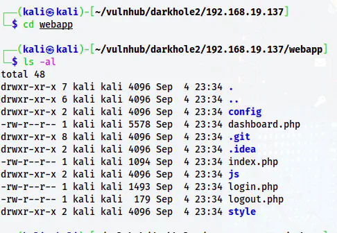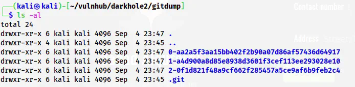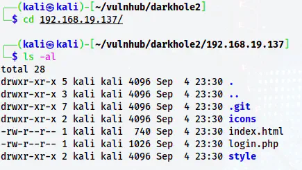 This will create a directory having the name as the IP address. Inside, the directory, it has the files downloaded recursively including the “.git”.