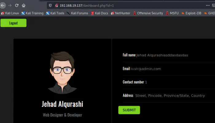 On the dashboard URL, we see a GET parameter “id”. When we change its value, we can observe changes in the page as well.