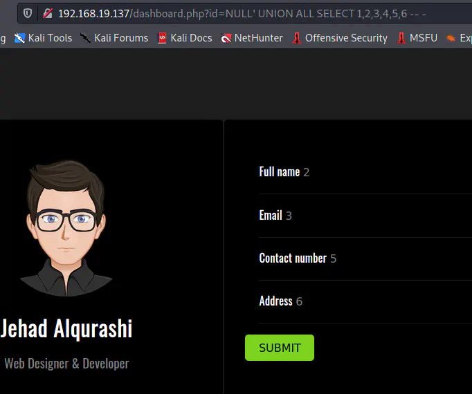 id=NULL' UNION ALL SELECT 1,2,3,4,5,6 -- -