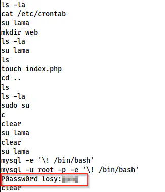 The root privilege escalation part is as easy as it could get. On the .bash_history file, we see a password intentionally put.