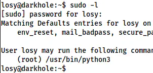 sudo python3 -c 'import os; os.system("/bin/bash")'