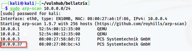 Here, the IP address of the target is 10.0.0.37 whereas that of my local machine is 10.0.0.4.