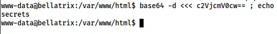In the same directory, we have another directory in base64 encoded format. Hence, I decoded the text to find that it meant secrets.