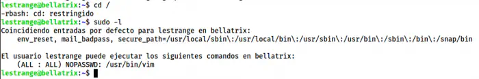 Here, we can see that the user can execute vim as any user. So, we can easily get the root. Furthermore, we don’t have to escape the restricted bash as we have access to execute the binary.