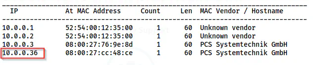 sudo netdiscover -r 10.0.0.0/24