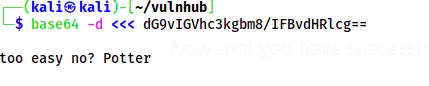 base64 -d <<< dG9vIGVhc3kgbm8/IFBvdHRlcg==